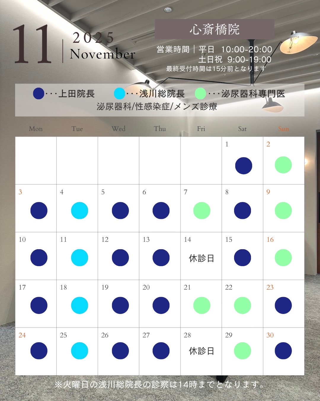 心斎橋院 ドクター出勤カレンダー